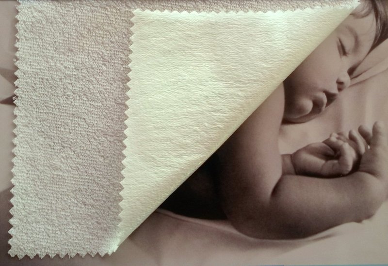 Composición del tejido: 80% Algodón 20% Poliéster Superficie tipo toalla: 100% Algodón Composición del film: 100% PVC |